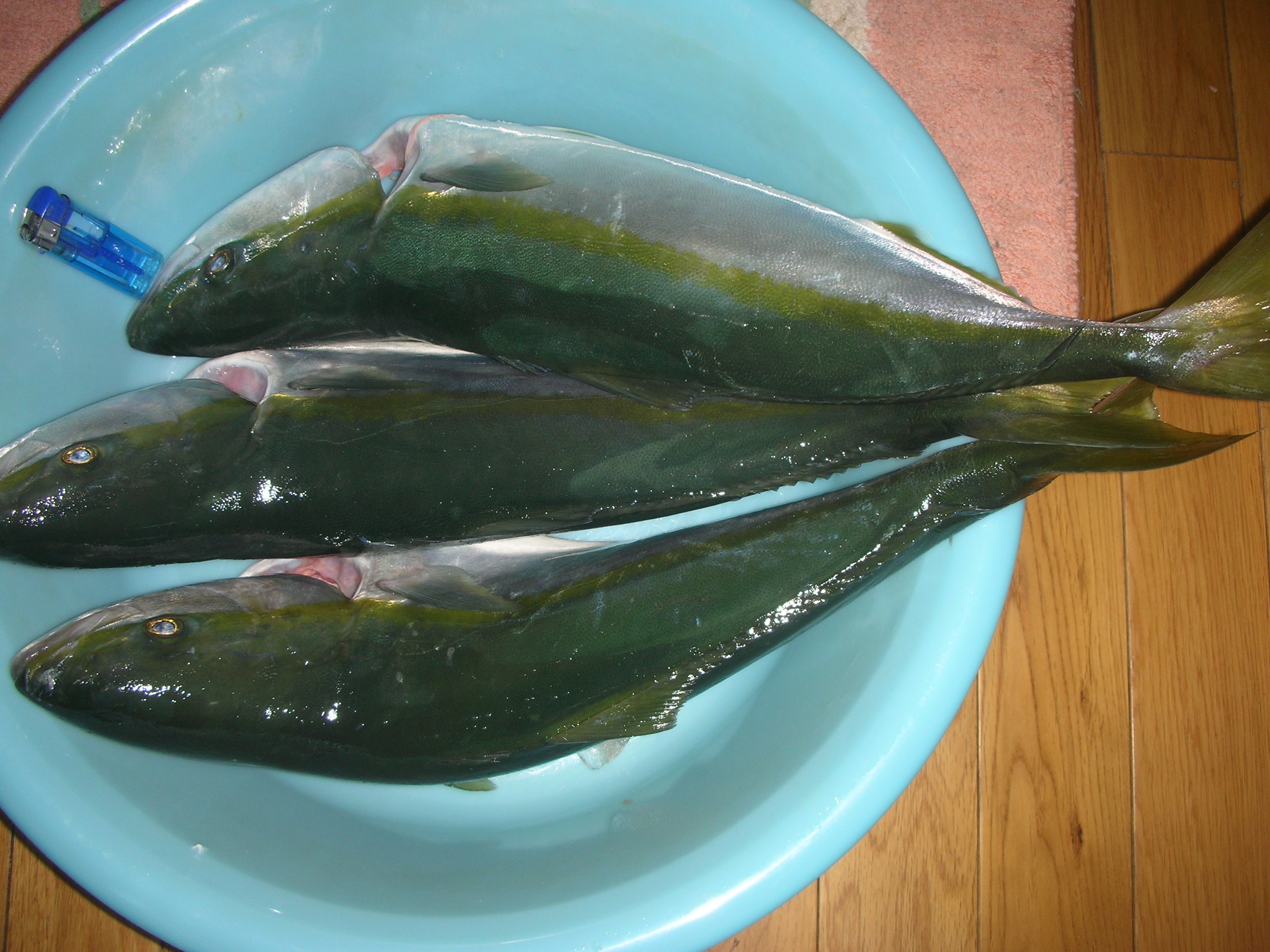 りの魚 もらいました!比較のためにライターを置きましたが、50センチくらいで刺身とから揚げ用にさばきました(*^。^*)鎌田さ~ん いつもありがとうございま~す