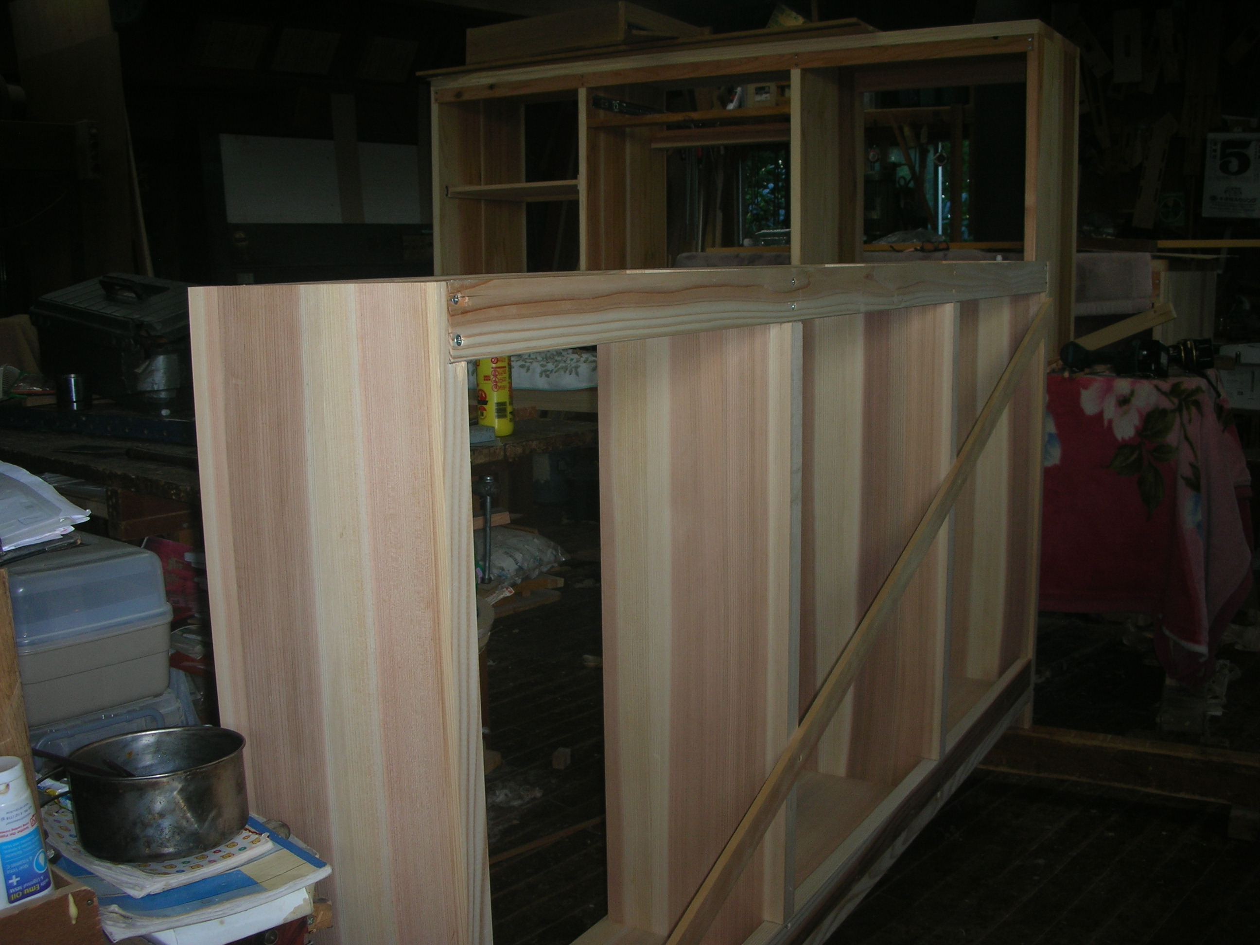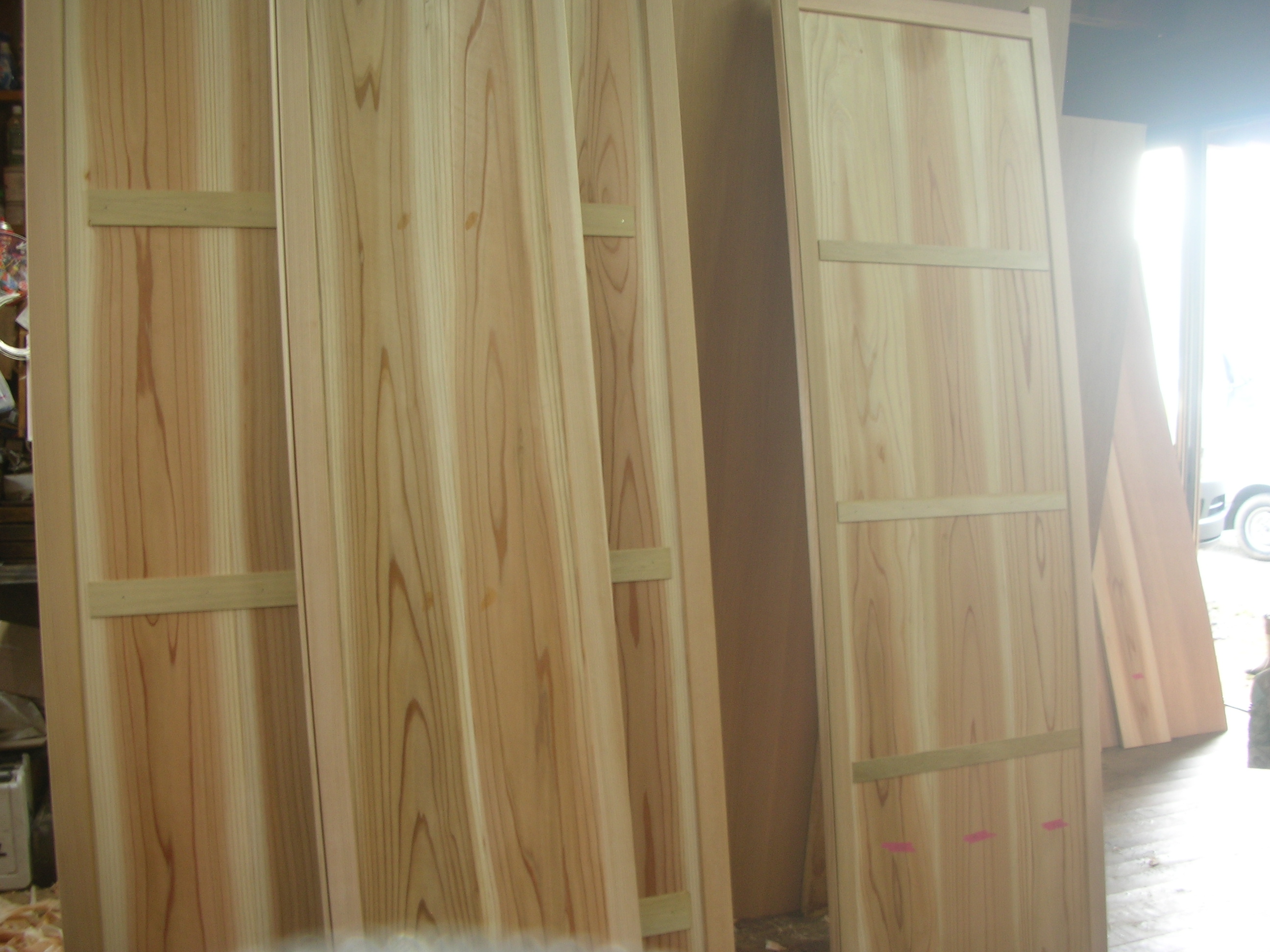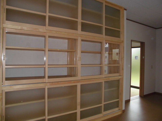 岩ケ崎地内の現場の建付けをしています 写真は食器戸棚の引き戸です。ご覧ください(*^-^*)