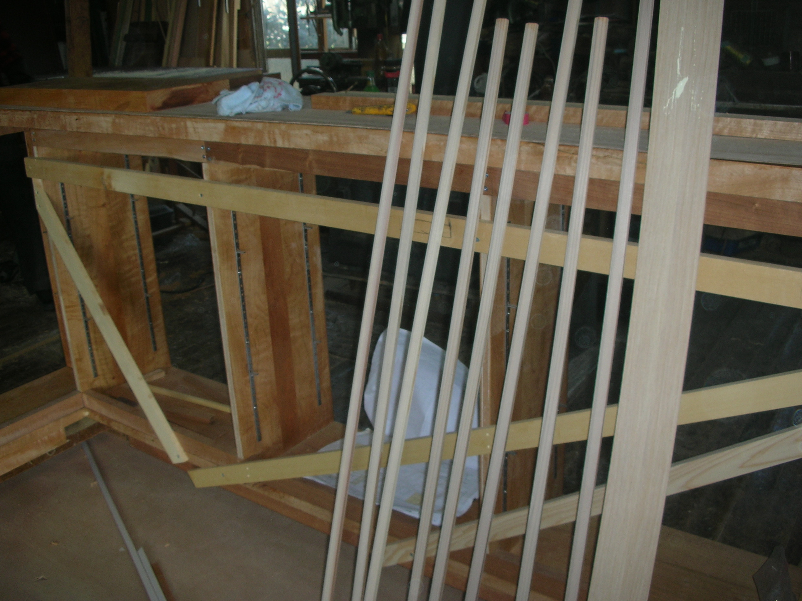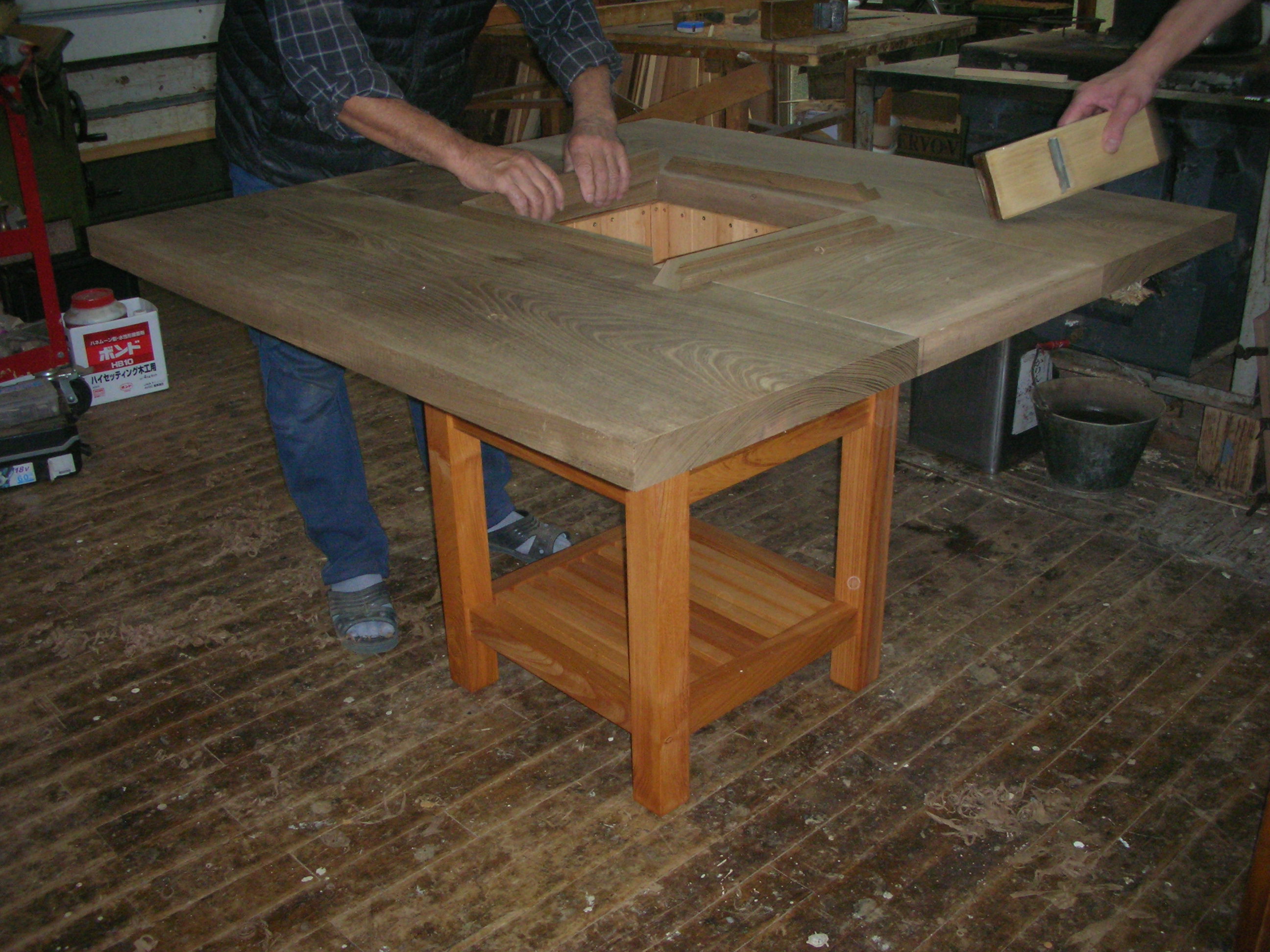 工場の様子 ご覧ください(*^-^*)桜材でカウンターを作成しています。