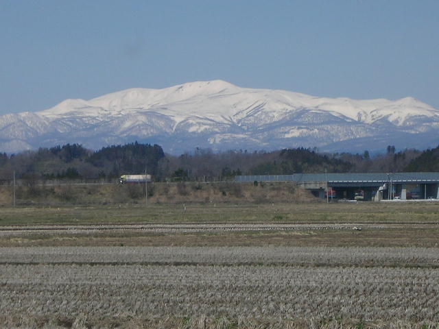 から4月。きょうの栗駒山と高速道路。天気がいいのできれいに撮れました(*^。^*)