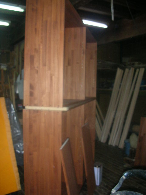 本棚 製作中です。かなり高さありますね。ごらんください。日中もやもや。いくらか残暑です。日は短くなってきました(^_^.)