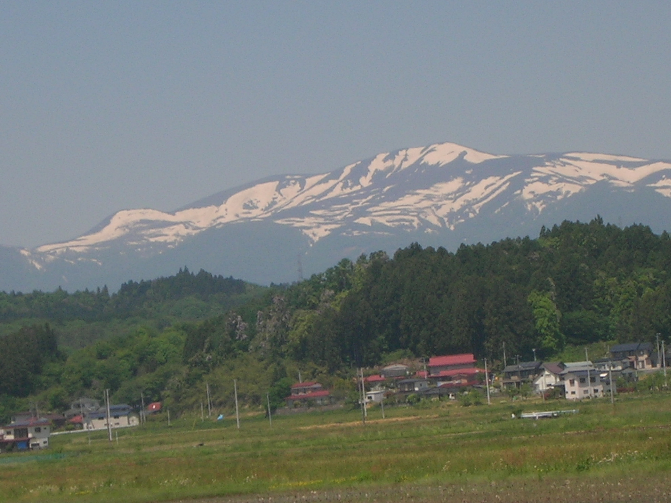 左側をみてください馬の形で雪が残っています。この形になると稲の種まきをはじめたそうですよ いまはこの時期は大体田植えが終わってるようですが