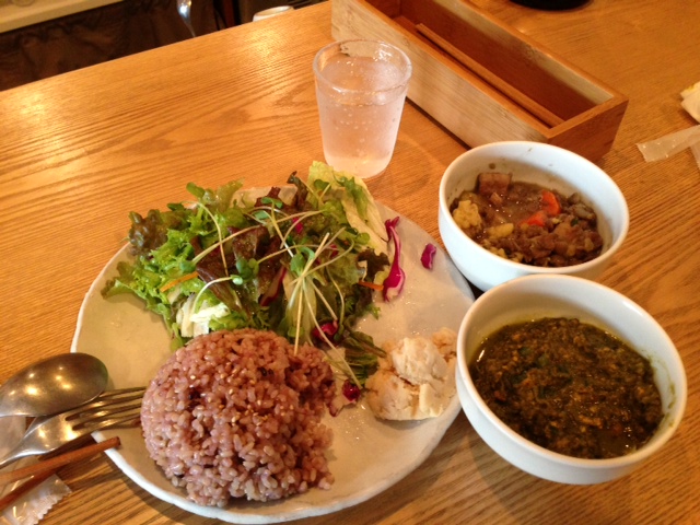 様!旬の野菜カレー(春菊)と、もう一品。偶然でしたがもっと偶然が(*^。^*)オーナーが「風の沢」へ、来たことがあるとのことで。抹茶を点てに、だったそうです。是非、お運びください。内装、器たち、とにかく びっくりでした(*^。^*)
