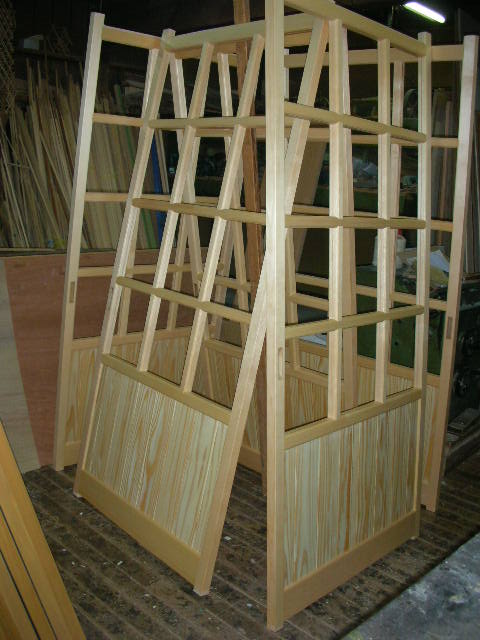 今日もいい天気!工場の建具たちも仕上がりの段階ですよ