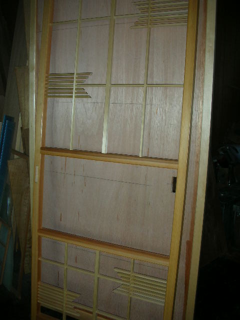 杉横張り板戸です。片面は襖です。ご覧下さい。